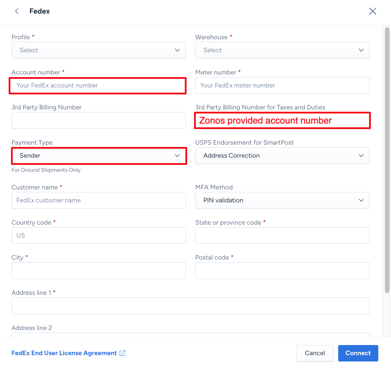 Configuring Zonos via FedEx or UPS