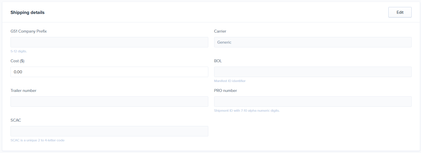 - Freight (By default): Orders that will be packed and ship using Pallets as the shipping containers. Freight orders have specific fields in the “Order details” tab: