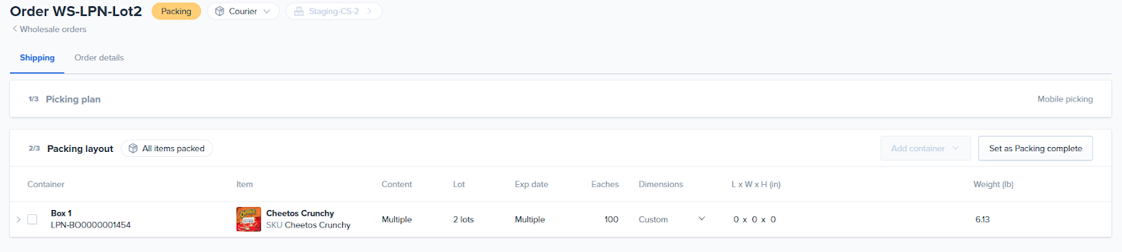 Important Note: Be mindful of these automatic adjustments when changing an order type after packing has commenced, as it directly impacts the structure shown in the packing layout screen. Ensure the resulting layout aligns with the requirements of the new order type before finalizing the packing process.