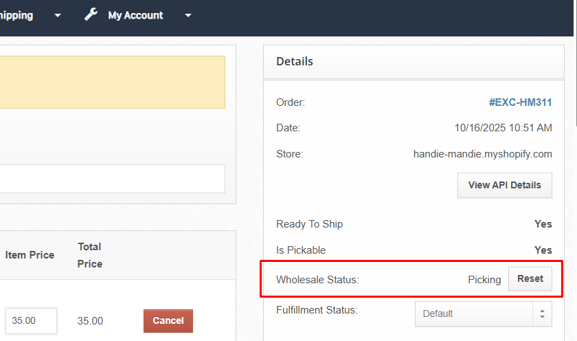 Wholesale orders move through specific statuses throughout the fulfillment process based on which step you are completing.
