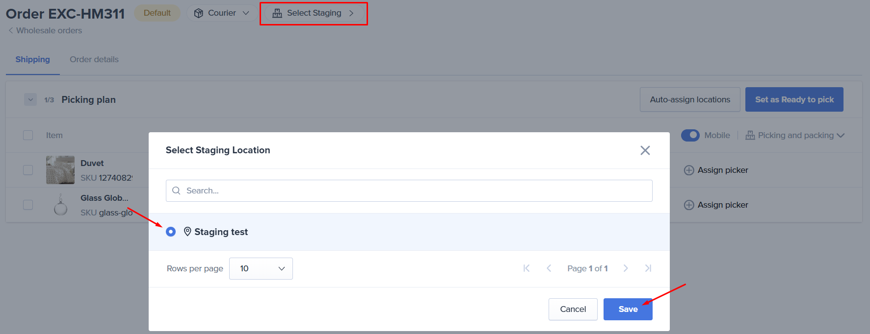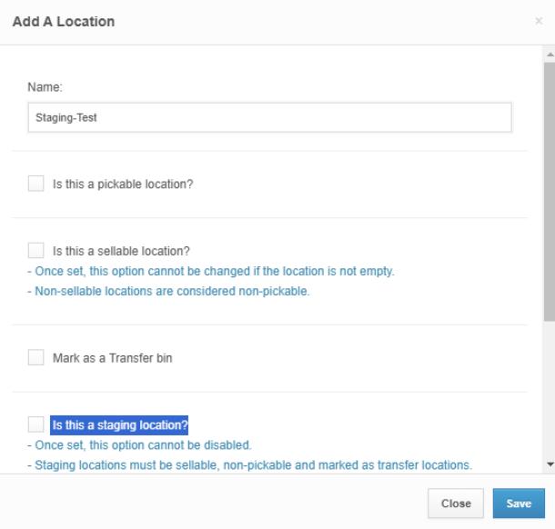 - Select an available Staging Location from the list and hit Save.