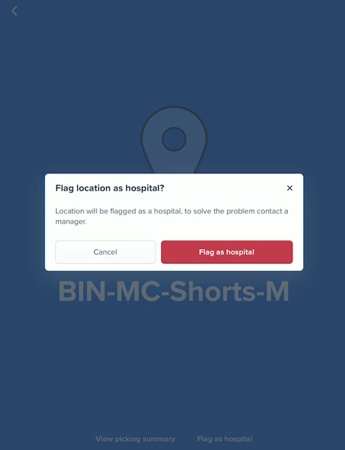 When there is a problem in the location, the picker can mark the location as Hospital. By marking the location as Hospital, they can continue picking another assignment.
