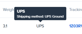 Hovering over the Carrier name will show the Shipping Method and label cost.