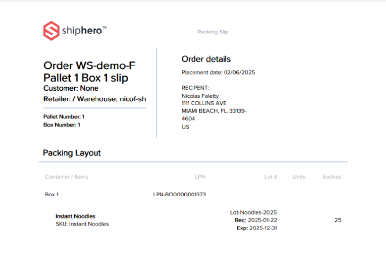 The main difference when receiving an order through SPS is how the labels are generated and the format they are printed in. With EDI-SPS orders the labels are generated on the EDI-SPS platform when the generate labels button is clicked vs. the native pallet/carton label generation within ShipHero.