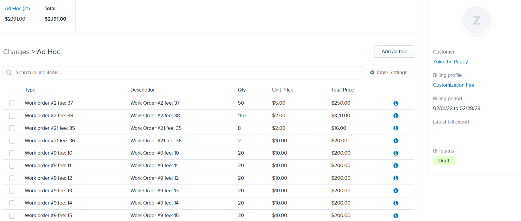 As a 3PL, you will have the option to add and bill for ad hoc charges relating to work orders.