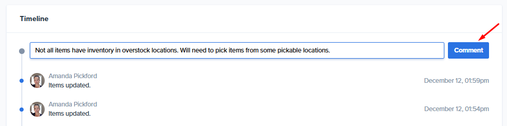 Communicate with the team asynchronously by leaving comments on the work order timeline. Just type in your message and then select Comment.