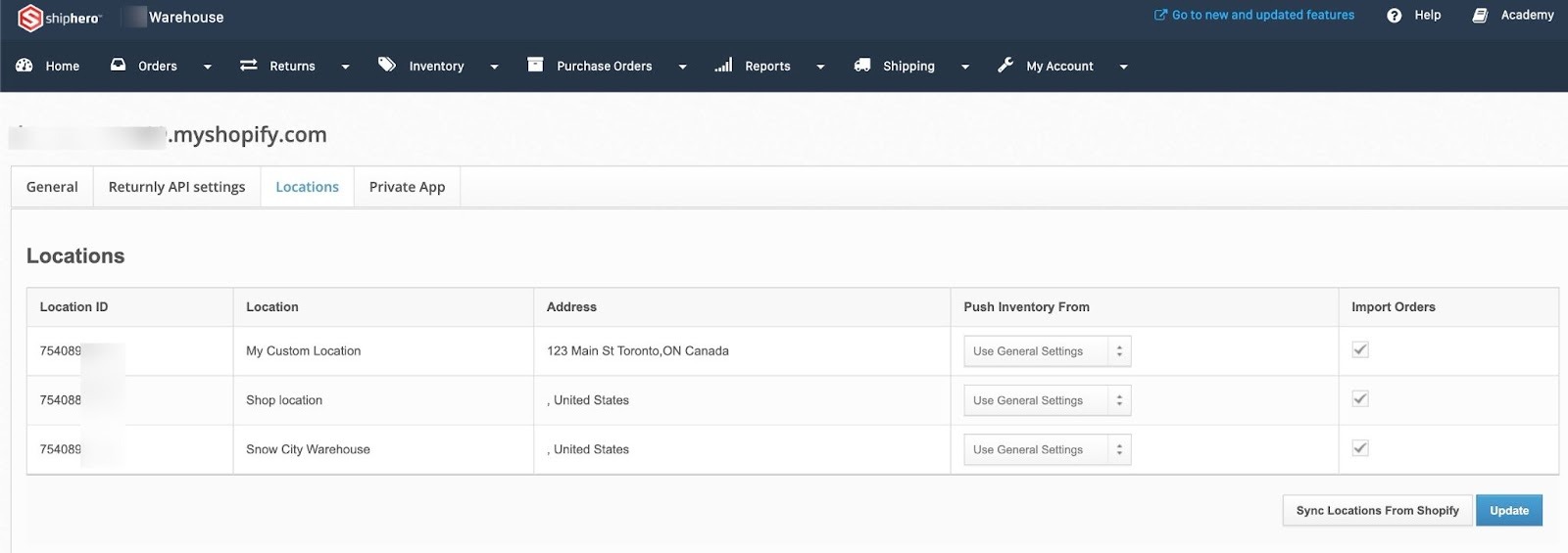 You’ll see a list of Shopify locations with an Import Orders checkbox for each one (as in this screen):