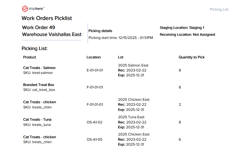 - If a SKU has a lot code, you can only pick the same lot/expiration for that SKU. We do not support mixing lot codes for the same SKU.