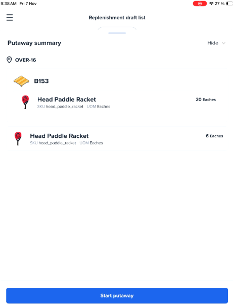 - Tap Start putaway.