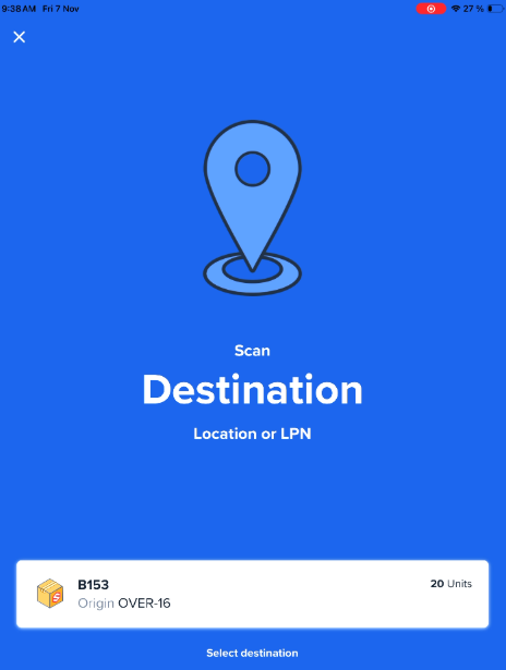 - The app will prompt you to Scan Source LPN or Location.