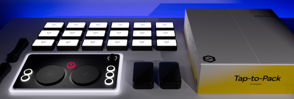 Tap-to-Pack replaces keyboard and mouse interactions at your packing stations with a dedicated hardware controller. Instead of clicking through the ShipHero packing app, your packers press physical buttons to print labels, complete orders, flag issues, and select box sizes.