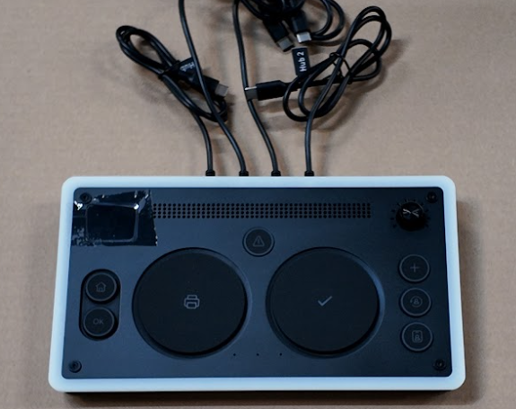 - Button Hubs: Two smaller hubs that hold external buttons. Each Button Hub supports up to 8 buttons and connects to the Main Hub via USB-C. Hub 1 handles one set of buttons, Hub 2 handles another. The hubs mount to your packing station shelf with included adhesive.