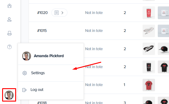 - Click the User Icon and click Settings from the Packing App or shipping.shiphero.com.