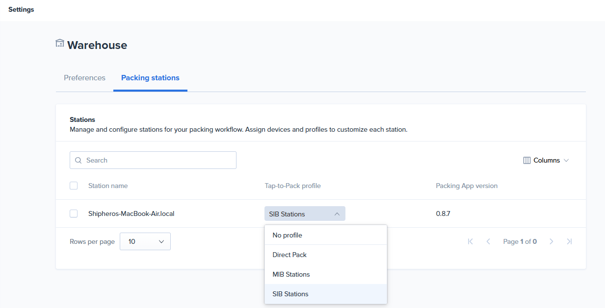 - You will see your stations listed by name. Select the correct Tap-to-Pack profile from the dropdown next to each station.