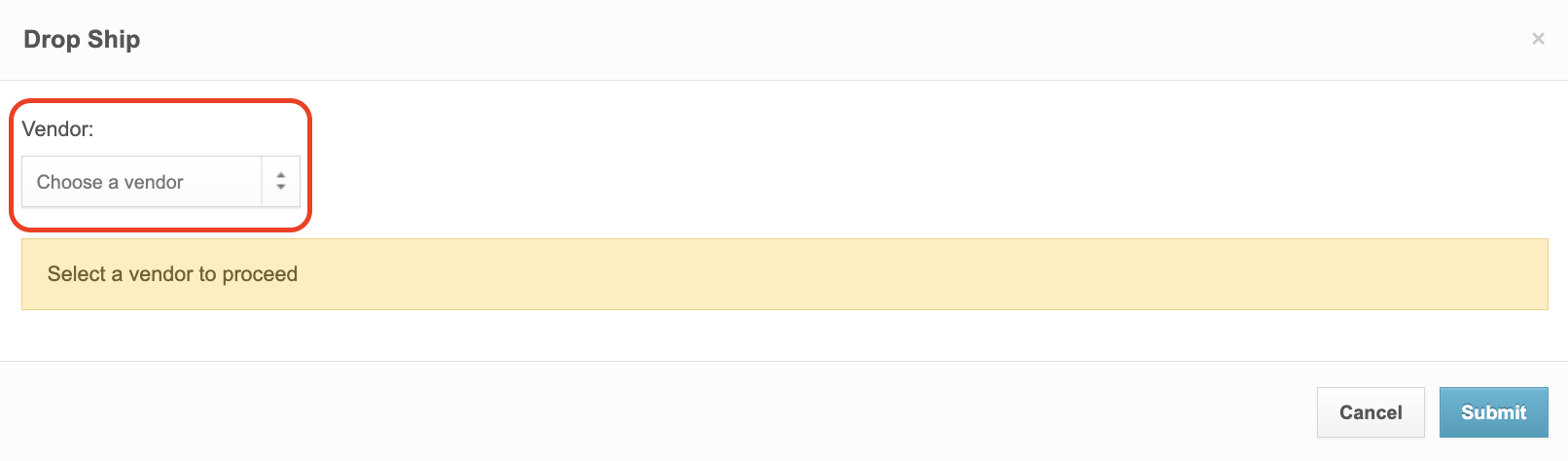 Only vendors that have been previously associated with a product will be available for selection during the drop shipment process.