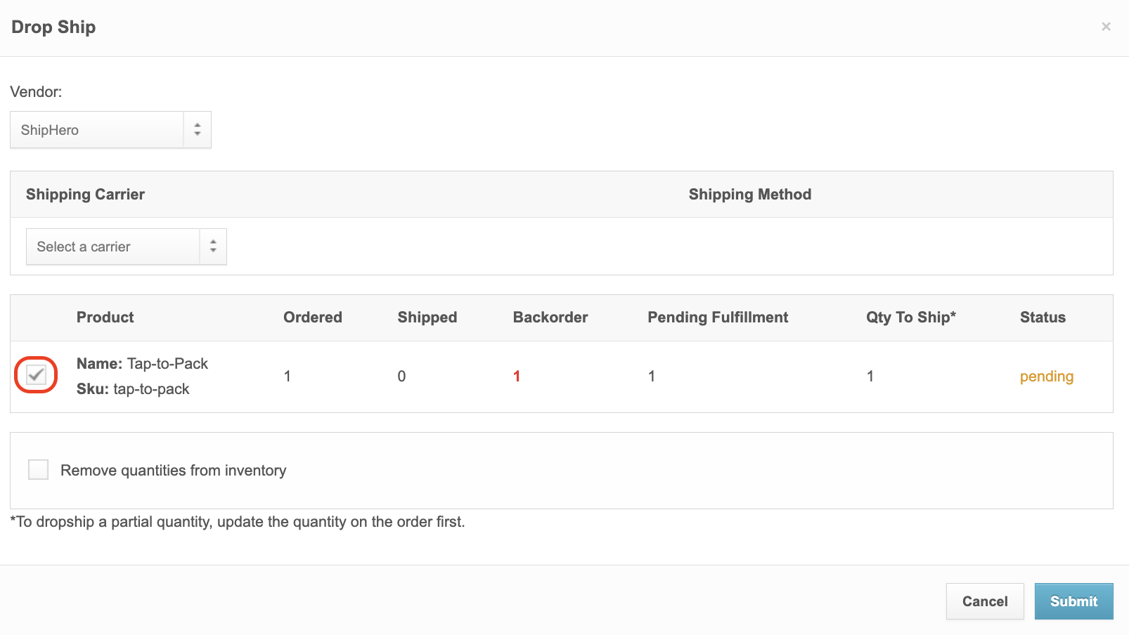 If you want to deduct the quantity shipped, select Remove quantities from inventory.