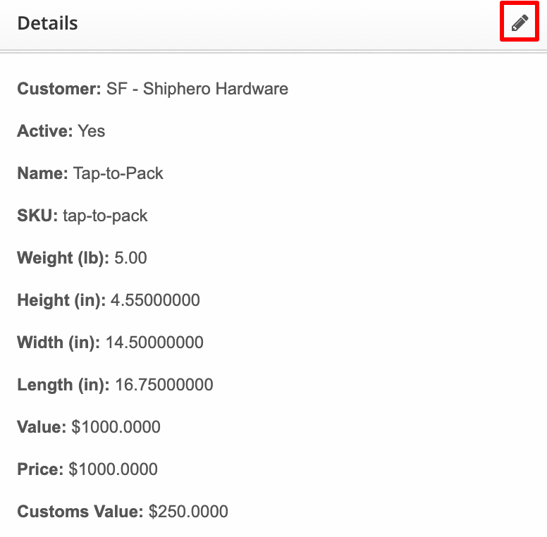 - Locate the Details section and click the Pencil Icon to edit.