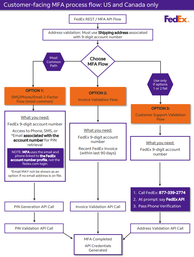 A visual expmple of Fedex's MFA Process Flow for US and Canadian accounts can be found after the sections where these methods are defined.