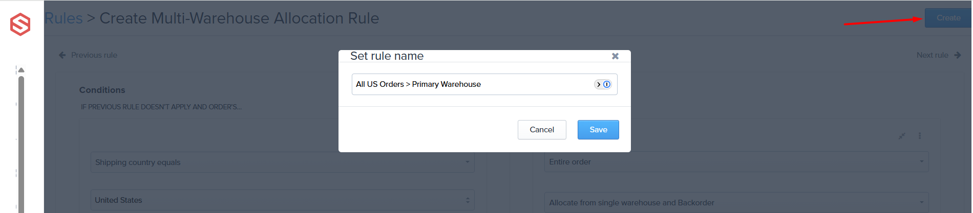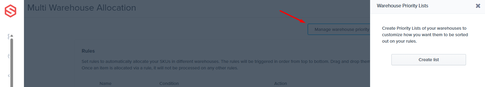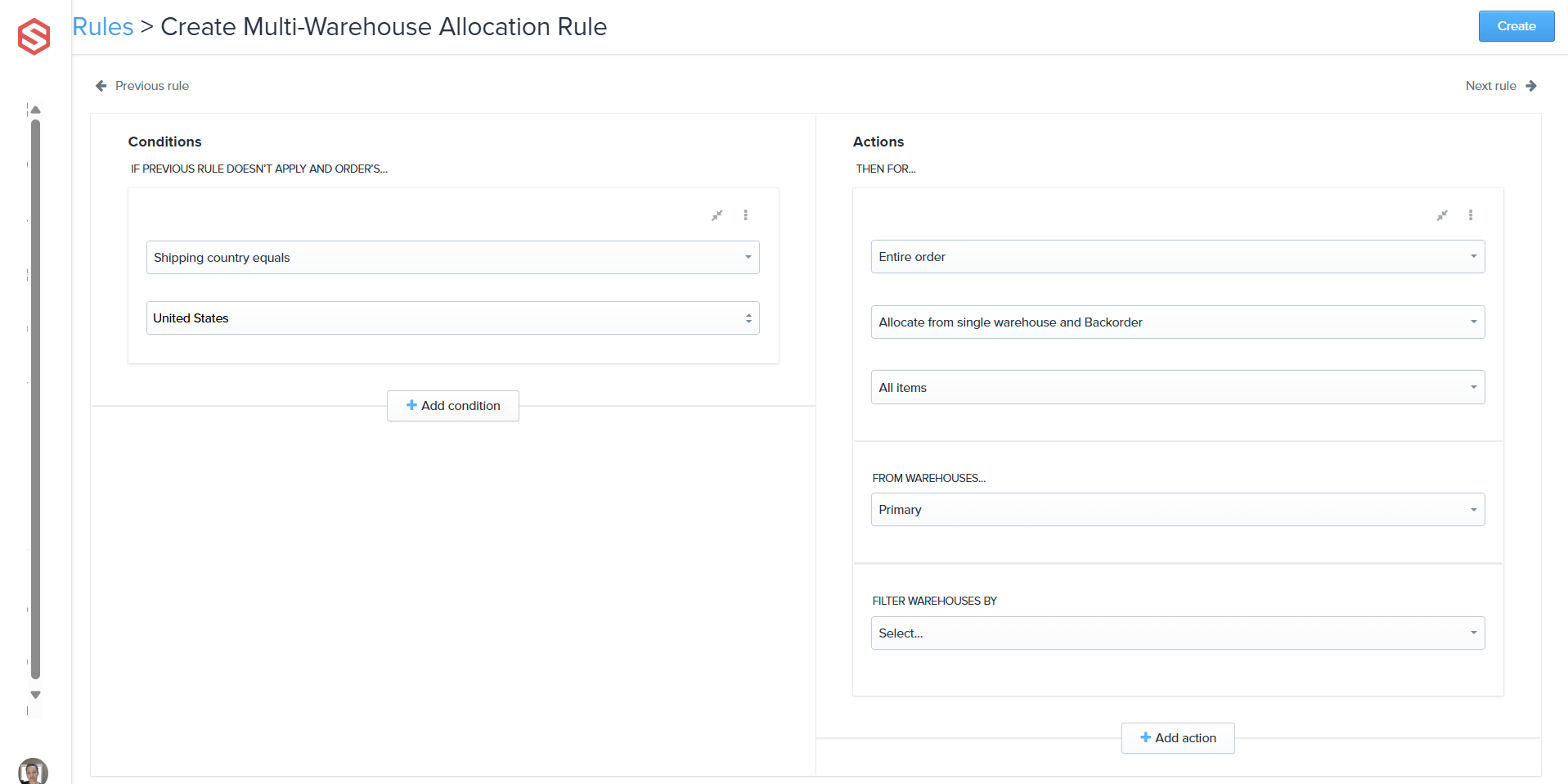 - Open the Multi Warehouse Allocation page and select the Create new rule button.