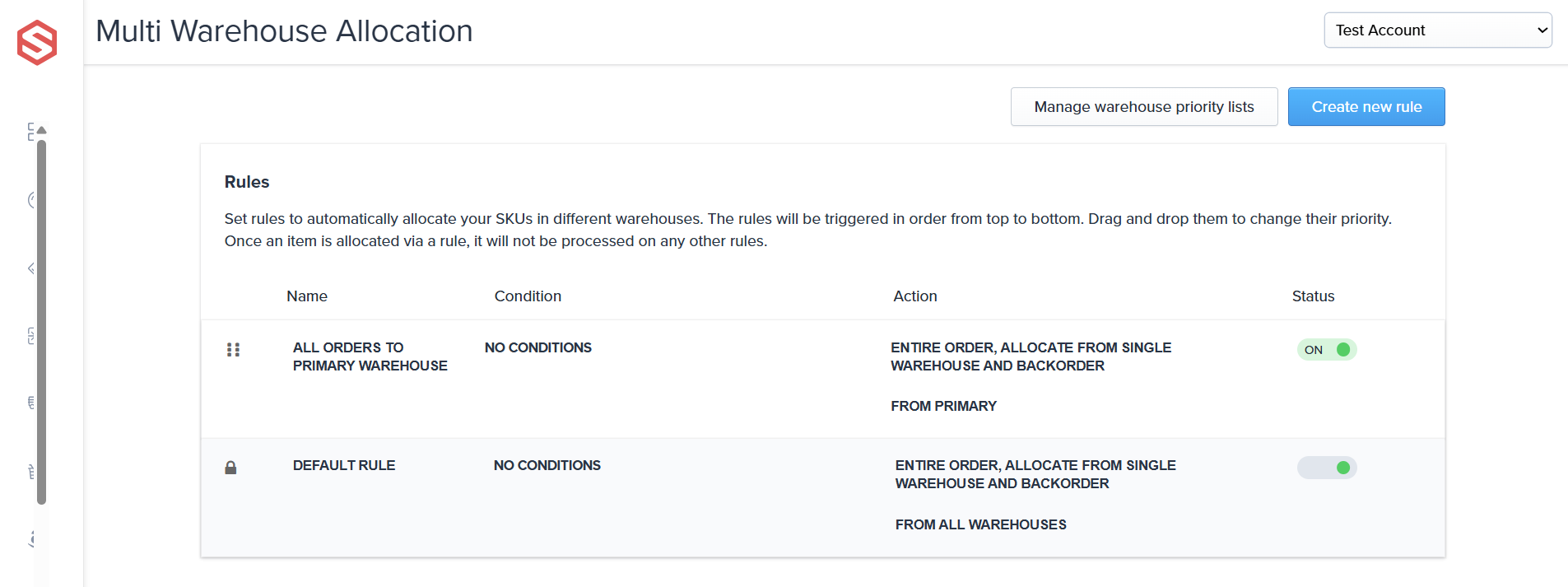 Note for 3PLs: Multi Warehouse Allocation needs to be enabled and rules configured at the client account level. To enable this feature for your client please provide our support team with the Customer Account ID of your client found on the 3PL page.