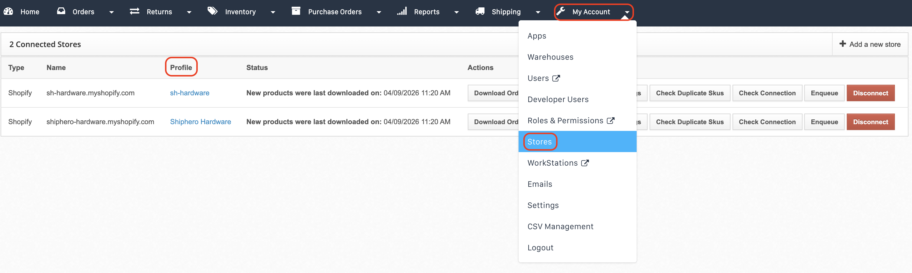 - Navigate to the My Account > Stores page.