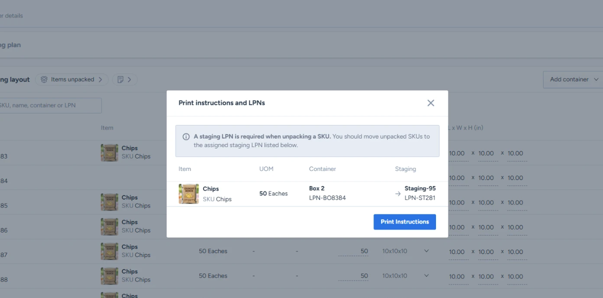 Set Packing Instructions: Toggle the visibility of the Packing Instructions modal to show or hide it during packing operations.
