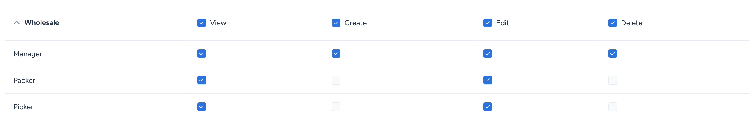 User Permissions: Users must have Wholesale:Manager: View and Edit permissions enabled on their assigned role to access and change wholesale settings.