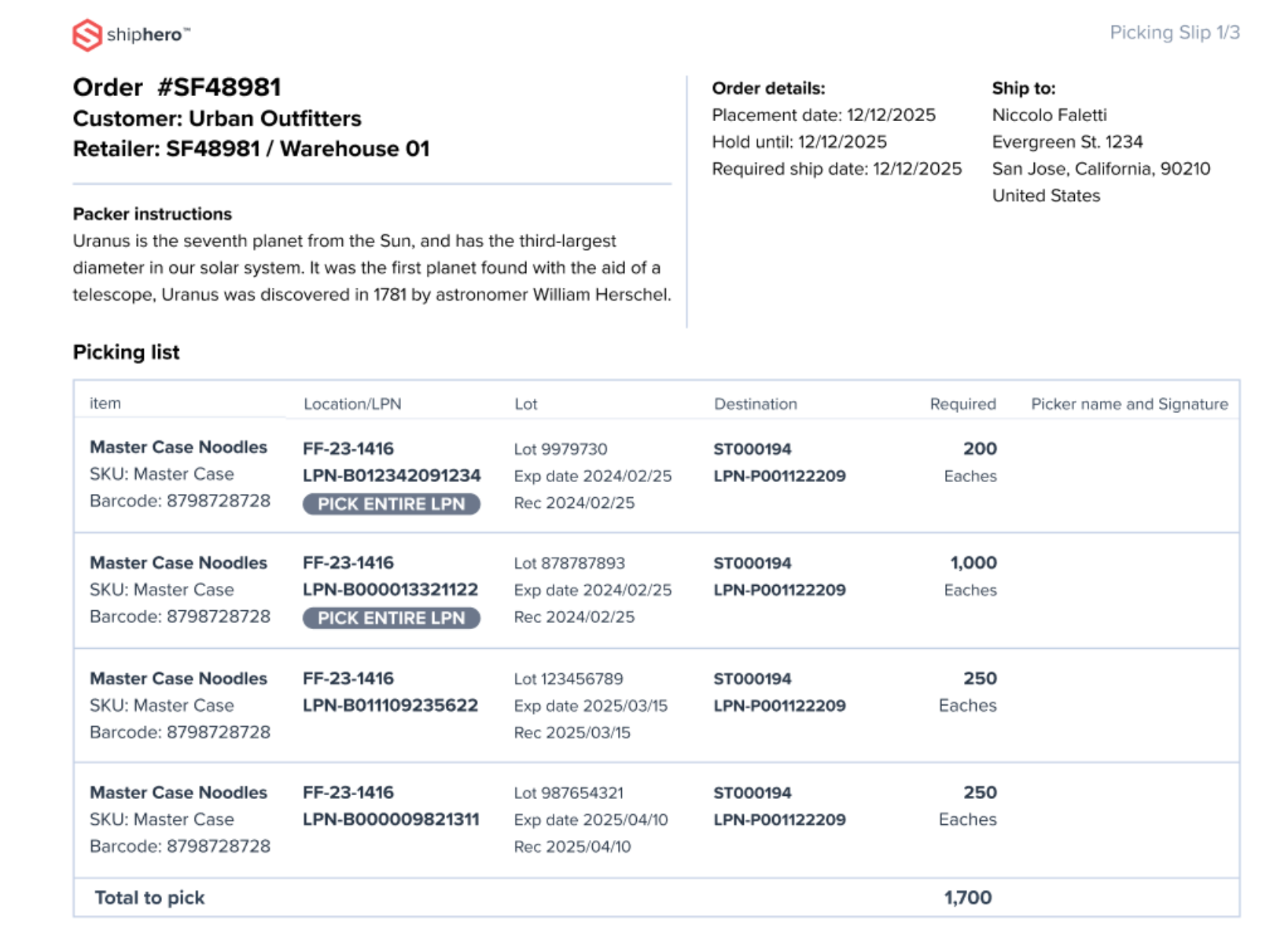 In Wholesale picking flows, ShipHero allows users to pick inventory assigned to License Plate Numbers (LPNs). This article covers the process of picking LPNs in manual and mobile workflows and the expected system outcomes.