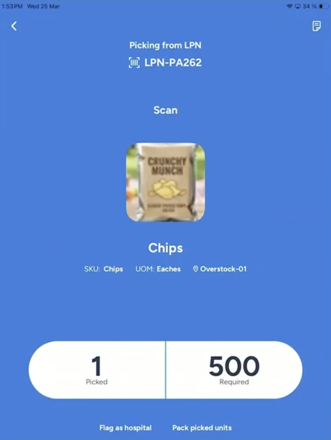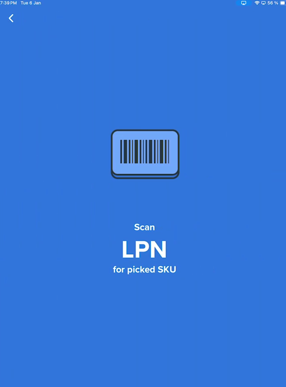 - If no Loose Inventory exists: The system prompts the operator to scan the specific LPN from which they are retrieving the item to maintain container integrity. once the LPN is scanned the mobile app displays "Picking from LPN"