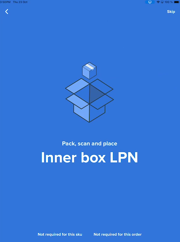 - Not required for this SKU: When this option is selected, the Inner Box selection will not appear for this SKU again in the case of a partial pick.