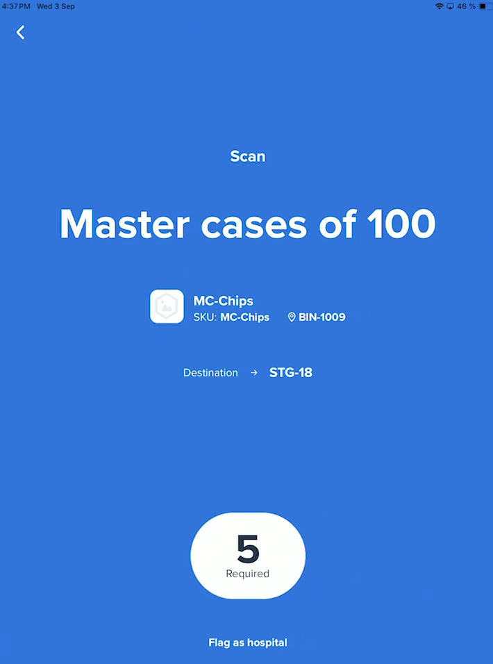 5. After finishing picking all the units from the location, you will return to the list of pending locations to pick.