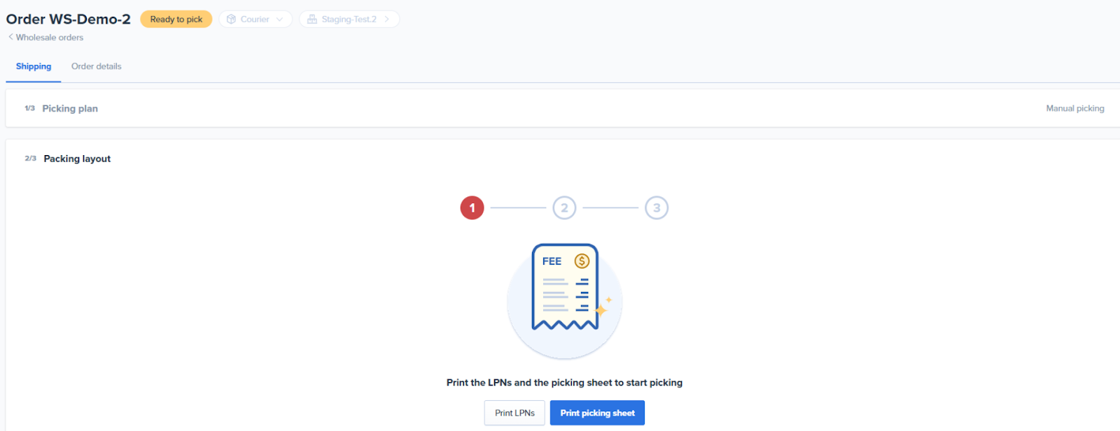 1. After assigning the locations in the picking plan, click the Set as Ready to Pick button. This opens the packing layout section.
