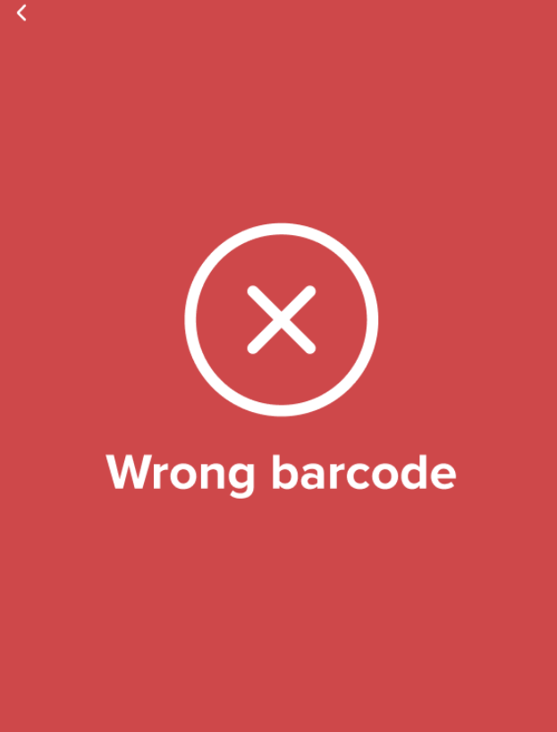 | Scan Item Page | Options Displayed when the correct product is scanned. | Error Message when the wrong item is scanned. |