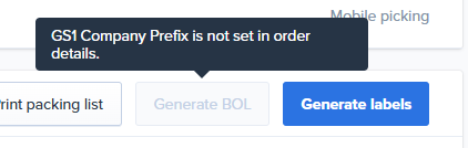 The GS1 Company Prefix field must be populated in Order Details for the Generate BOL button to be selected