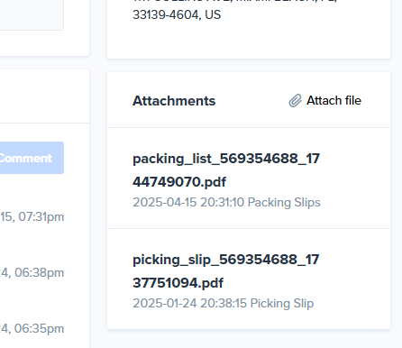 | Example Packing Slip | Example Attachments section |